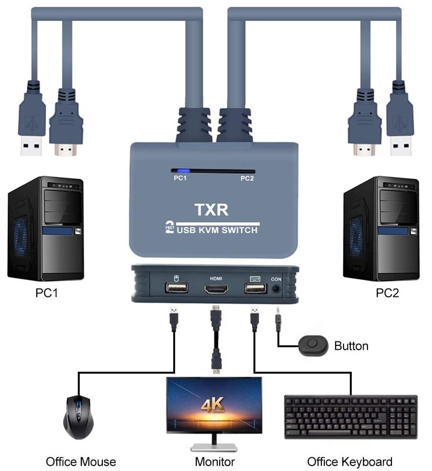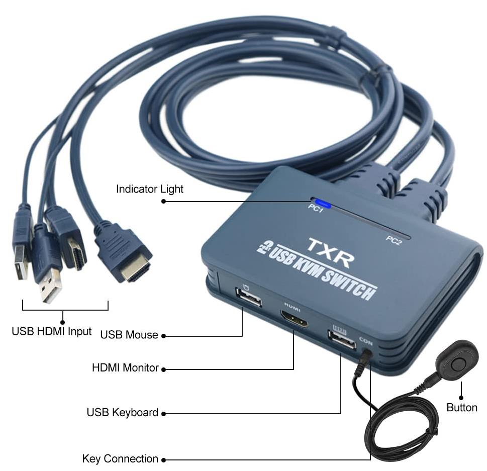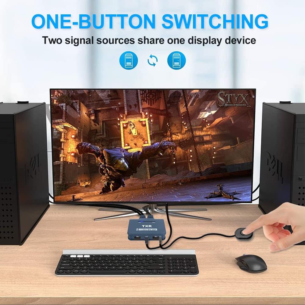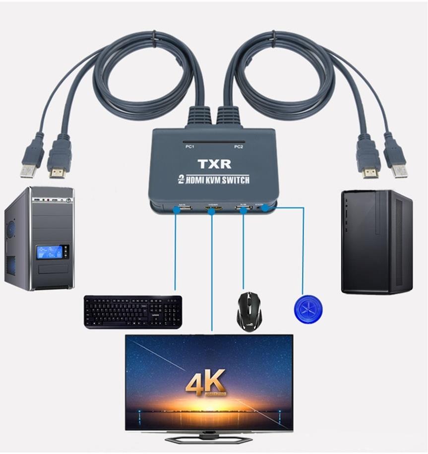 Alfais AL4732 HDMI KVM Switch 2 Port USB 2 PC Tek Kasa Klavye Mouse Kontrol Çoklayıcı