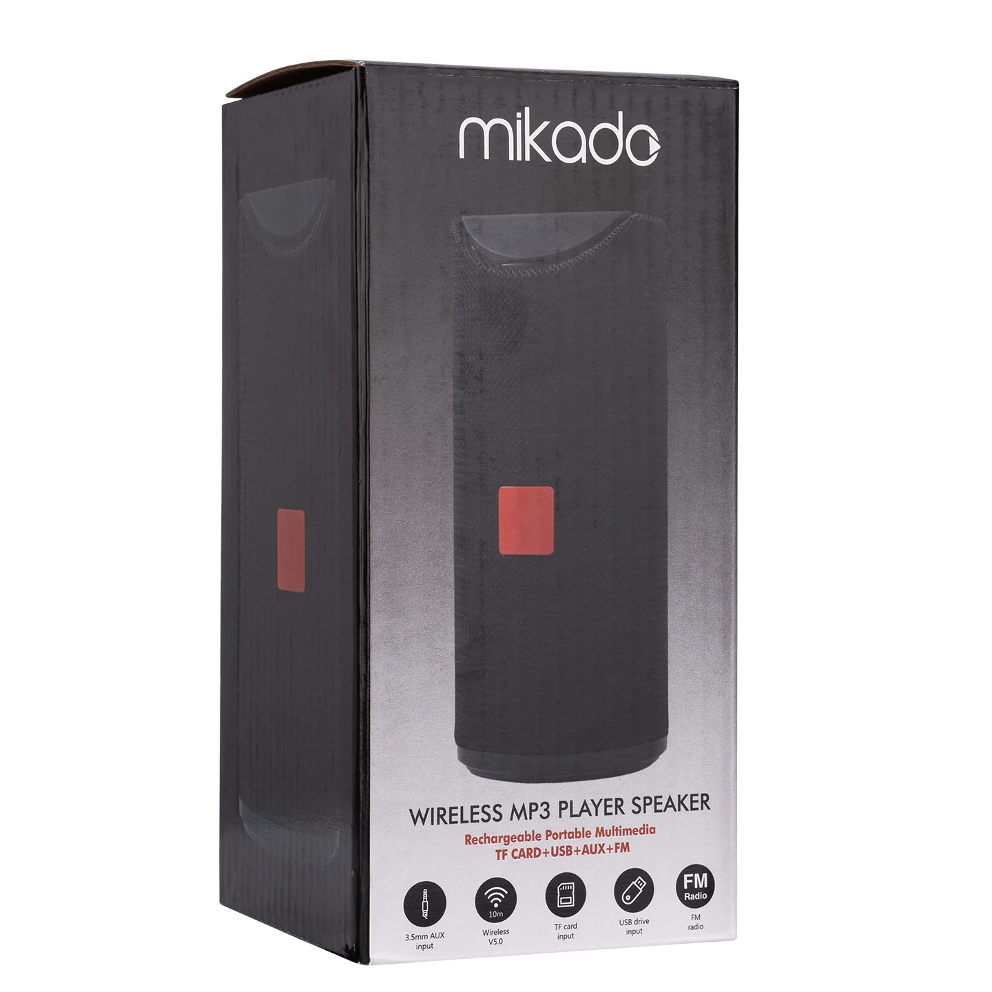 çıklama Bluetooth SpeakerMarka MikadoModel MD-BT66Renk SiyahIşıklandırma YokBağlantı Tipi Bluetooth - USB - AUX - Micro SD - FmKablosuz Standart BQB5.0Frekans 2.4GKontrol Metodu Tuşİletim Mesafesi 10MFrekans Tepkisi 200Hz-20KHzHoparlör Boyutu 52mm *2Hoparlör Gücü 4 Ohm 3WGiriş Voltajı DC 5V/1AGüç Girişi Micro USBBatarya Tipi LityumBatarya Kapasitesi 3.7V/1200mAhOynatma Süresi 2-3SaatÜrün Boyutu 75x75x165mmPaket Boyutu 85x80x170mmPaket İçeriği Ürün / Şarj Kablosu / Kullanım Klavuzu / Garanti BelgesiGaranti Süresi 24 Ay
