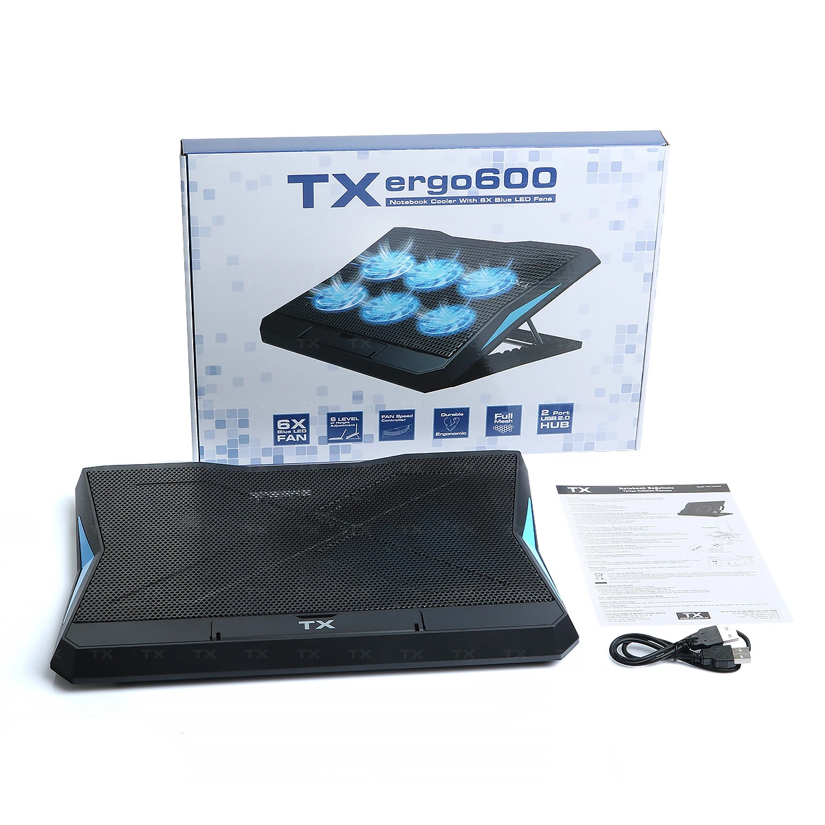 TX Ergo600 notebook soğutucu benzersiz genişliği sayesinde 9" ile 17" boyutları arasındaki tüm Ultrabook, Notebook, MacBooklar ile tam uyumludur.